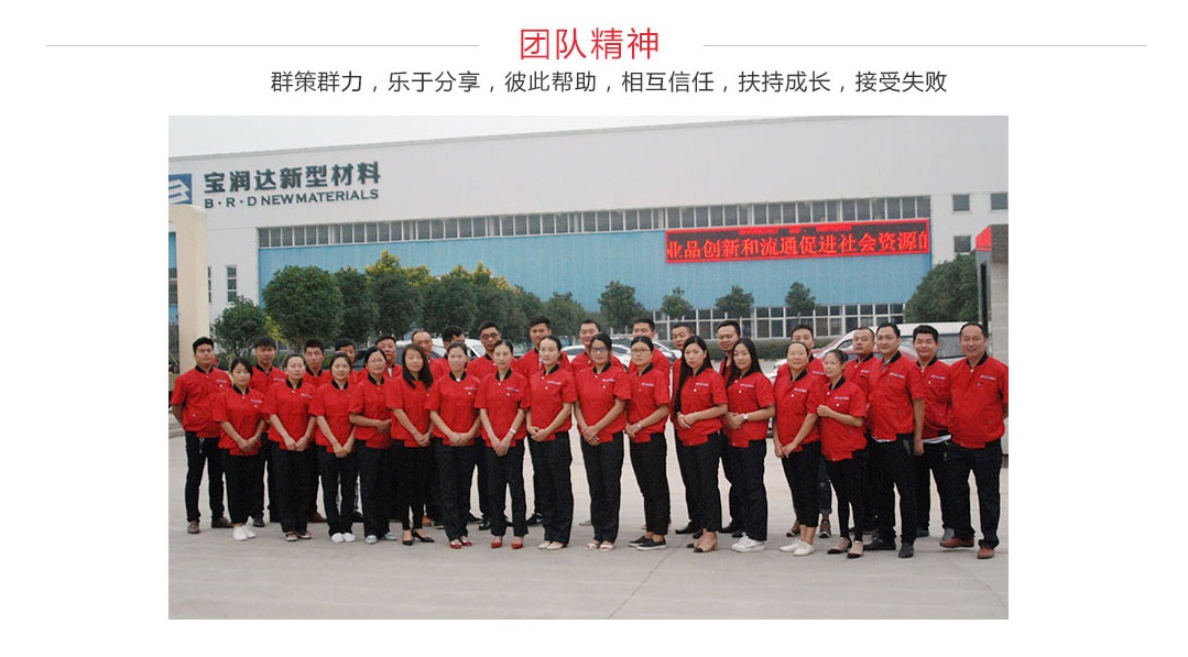 寶潤達(dá)新型材料有限公司以追求“品質(zhì)至上,誠信待人”為使命,堅持綠色環(huán)保生產(chǎn), 堅持以人為本,用心打造讓客戶滿意的產(chǎn)品與服務(wù),給員工提供更加安全、舒適的工作環(huán)境 ,正向著更高、更強的目標(biāo)邁進。